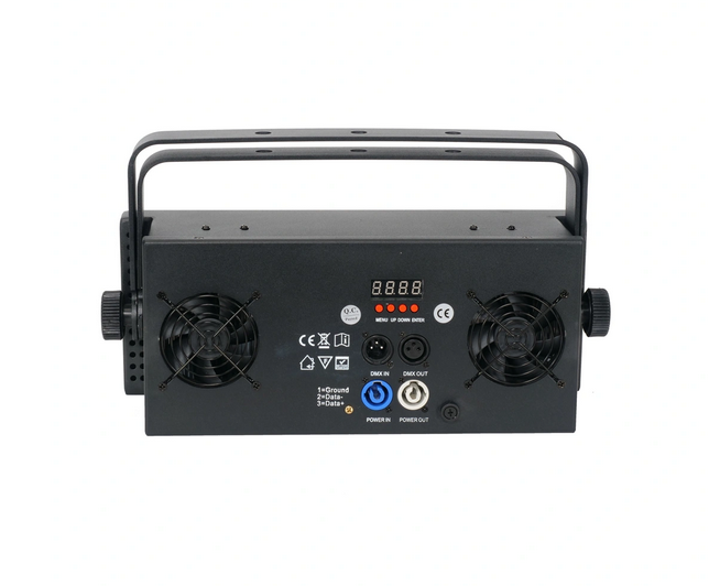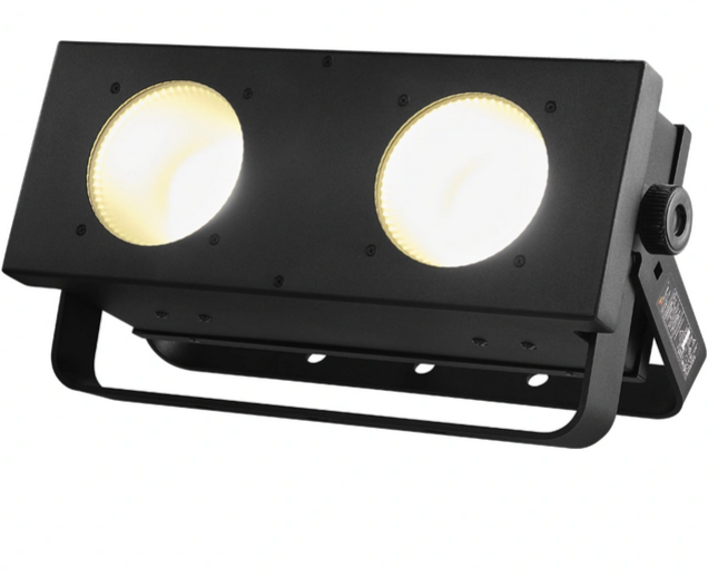 Our COB blinder stage light is a specially designed, flicker-free, 2-eye spectator lamp that is particularly suitable for use as a film and television, using warm white (3200K) or cool white (5600K) COB LED beadlets with an angle of 30 degrees, each lamp individually controllable. High brightness, high Color Rendering Index(CRI), smooth dimming, uniform light distribution, different speed strobe effect, pulse / random strobe effect, built-in multiple self-running program and macro function.